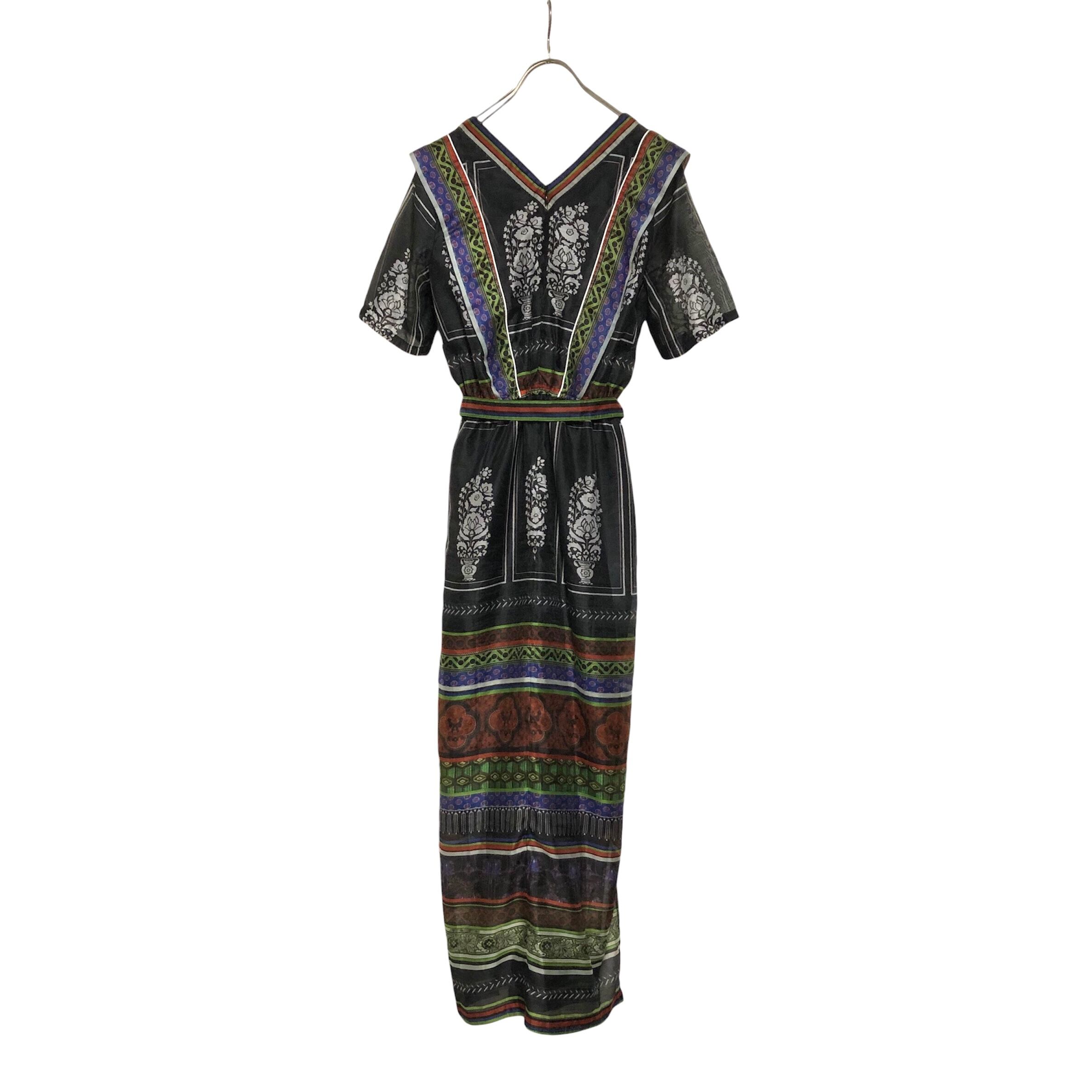ステキ色柄な民族的マキシワンピ。 雰囲気ありますね☺︎ ウエストゴム 着丈138.肩幅38.身幅40.袖丈26cmほど